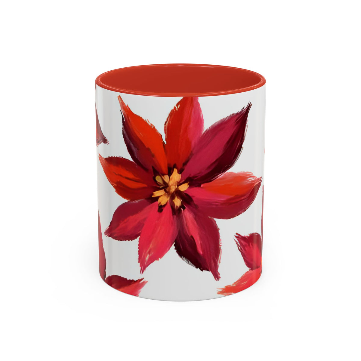 Warmth in your hands and a flash of holiday color. This 11oz ceramic coffee mug wears deep red poinsettias against a crisp white canvas, the colored interior and handle framing each sip like a small celebration. It feels familiar — the weight of the mug, the glossy finish, the rounded C-handle — yet the bright floral motif brings a seasonal lift to slow mornings, festive brunches, and quiet evenings by the tree. For those who collect holiday tableware or want to anchor a cozy coffee ritual, this mug slips naturally into the rhythm of December: steaming mugs, wrapped hands, and conversations that stretch on. The durable print and vibrant hues hold up through daily use, so the poinsettias keep returning with every refill.